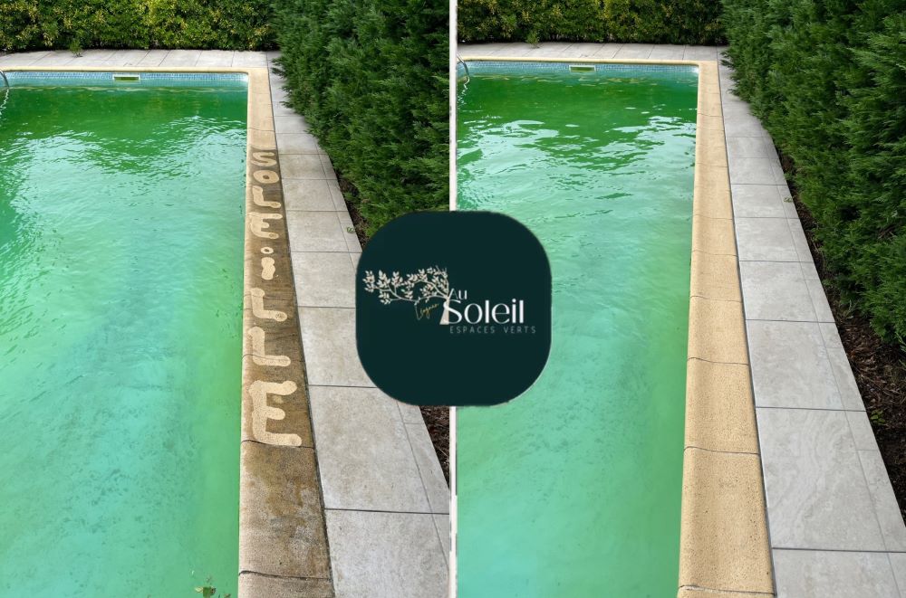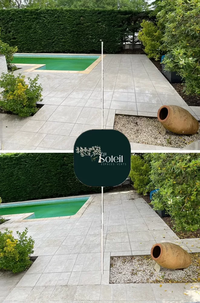 Au Soleil Des Espaces Verts a procédé au nettoyage d'une terrasse et les abords de piscine à Léognan