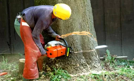Abattage d'un arbre vieux de 100 ans dans un jardin mitoyen